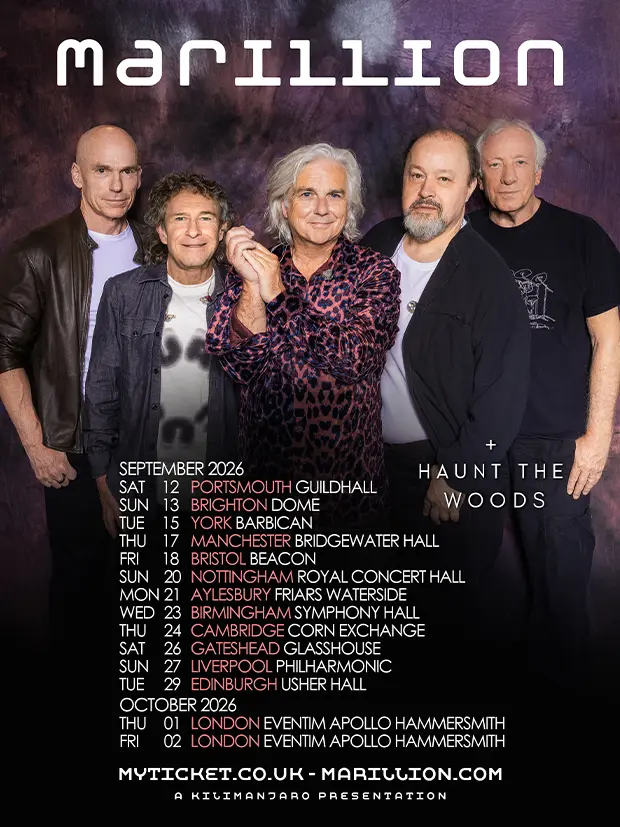 Marillion is a rock band formed in Aylesbury, England . Their 30-year career is marked by two distinctive phases; the early years fronted by Fish which saw their greatest commercial success, and much longer period fronted by Steve Hogarth in which the band have constantly re-invented themselves so as to continue to be relevant into the 21st century. The Fish era is often categorized as neo-progressive. They originally started as "Silmarillion" (from Tolkien's book) with heavy influences from classic Genesis but went on to develop their own distinctive sound. The band was formed in 1979 by Mick Pointer (drums), Steve Rothery (guitar), Doug 'Rastus' Irvine (bass), and others, soon adding vocalist Fish (real name Derek W. Dick), Diz Minitt (bass), and Brian Jelliman. By the time of their first album, 1983's Script for a Jester's Tear, the bass position had been taken over by Pete Trewavas and keyboards by Mark Kelly. The studio albums Fugazi (1984), Misplaced Childhood (1985), and Clutching at Straws (1987), as well as the 1984 live album Real to Reel all sold respectably, and the band scored a hit single in Britain with Kayleigh in 1985. When Fish left the band in 1988 after four albums he was replaced by Steve Hogarth. A former member of The Europeans and some-time collaborator with The The and Julian Cope, Hogarth brought a new energy to the band. Across a further ten albums, Hogarth – along with existing members Rothery, Kelly, Trewavas, and Mosley – have reinvigorated and constantly redefined Marillion’s sound. They forged into new musical territories with a succession of inventive, emotional albums, displaying little regard to the vagaries of hit charts or radio playlists. After the release of 1999’s marillion.com the band freed themselves from record company pressure once and for all by launching their own record label, the Intact imprint. Thanks to their pioneering embrace of the Internet through their website http://marillion.com, Marillion have developed a unique and intimate relationship with their fans. From sponsoring entire tours of the USA to funding the recording of recent albums, Marillion’s global fan-base is unique in its affection and dedication. As a result, such passionate, wholesale support has allowed Marillion to step outside of the conventional music industry and find their own path. In 2001 Anoraknophobia saw Marillion take the groundbreaking step of asking fans to pre-order an album 12 months before release. An amazing 12,000 people signed up, helping to finance the recording. The band once again took pre-orders for the 2004 release Marbles, but this time the money was channelled into a campaign fund to promote its launch. The success of singles Don't Hurt Yourself and You're Gone – the latter making it all the way to number 7 – vindicated the band's independent strategy. Their 2007 album Somewhere Else reached number 24 in the UK album chart with their most recent single Thankyou Whoever You Are hitting the UK singles chart at number 15. The band shows no signs of fading away after more than 25 years of activity. Their 15th album, "Happiness is the road", was physically released in October 2008 but was originally available exclusively from the band's website. It was released with little promotion and a deluxe pre-order package was made available as with Marbles. 'Happiness is the Road' is the second studio double album of a long career (2004's Marbles was the other). A UK and European tour followed the album's release, and the band is taking special effort to record every show in the "Happiness on the Road" tour, making the recordings available from the band's website.